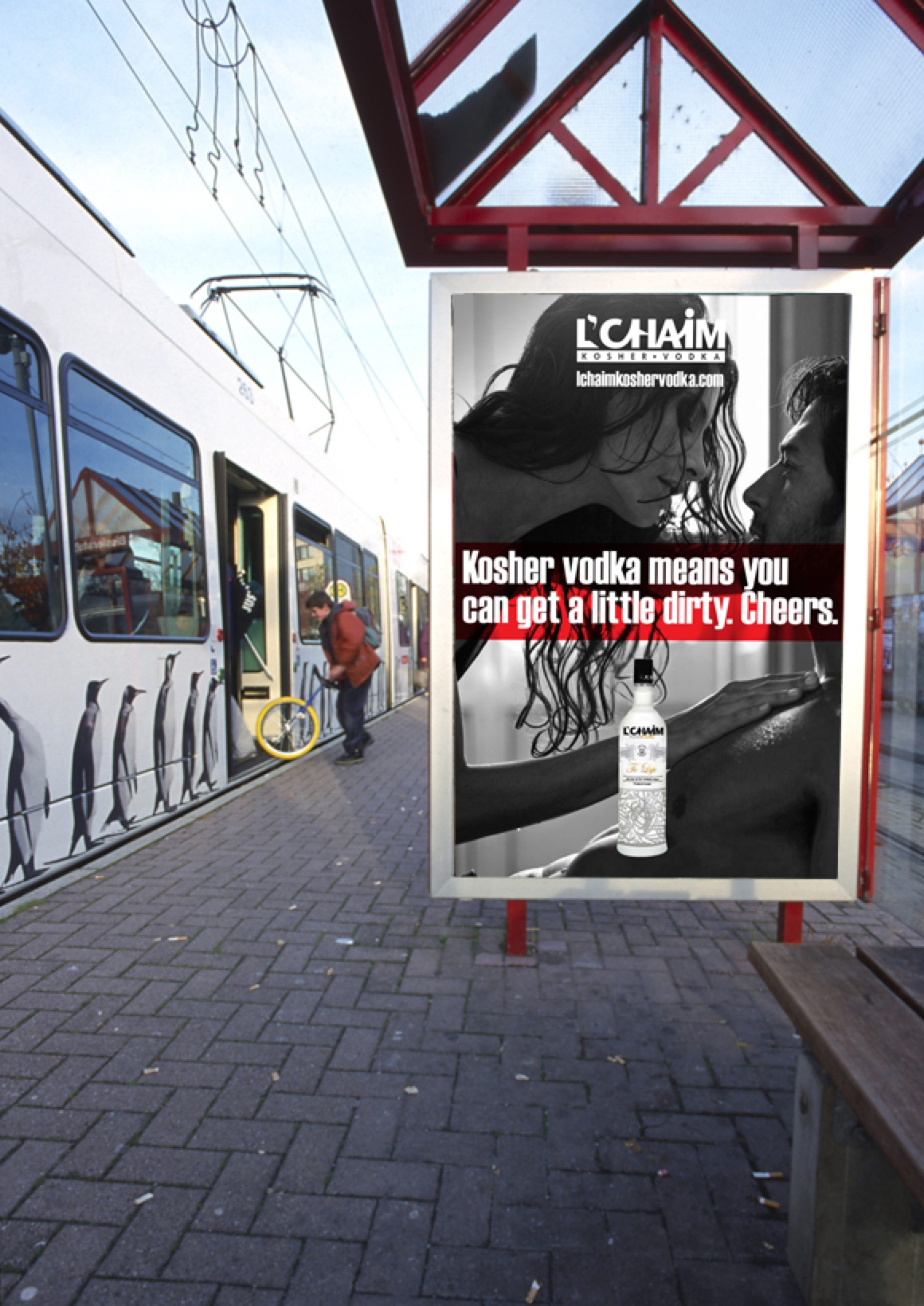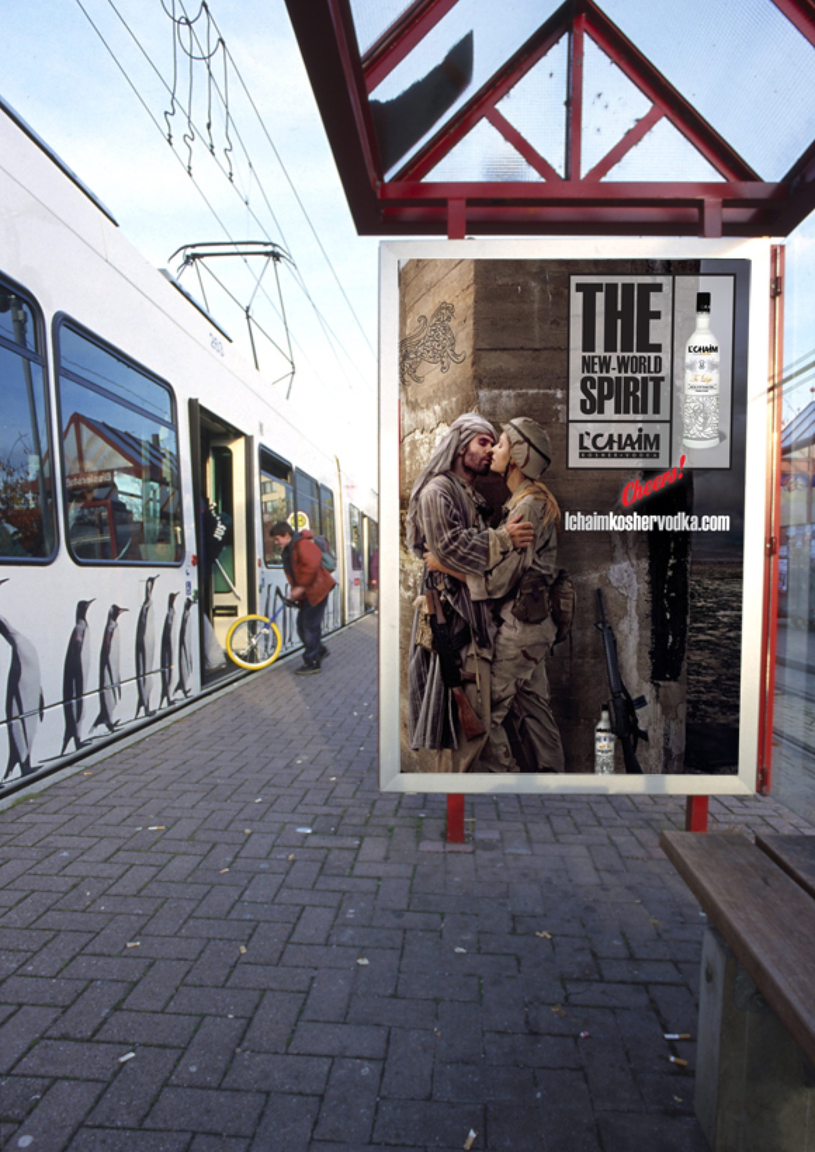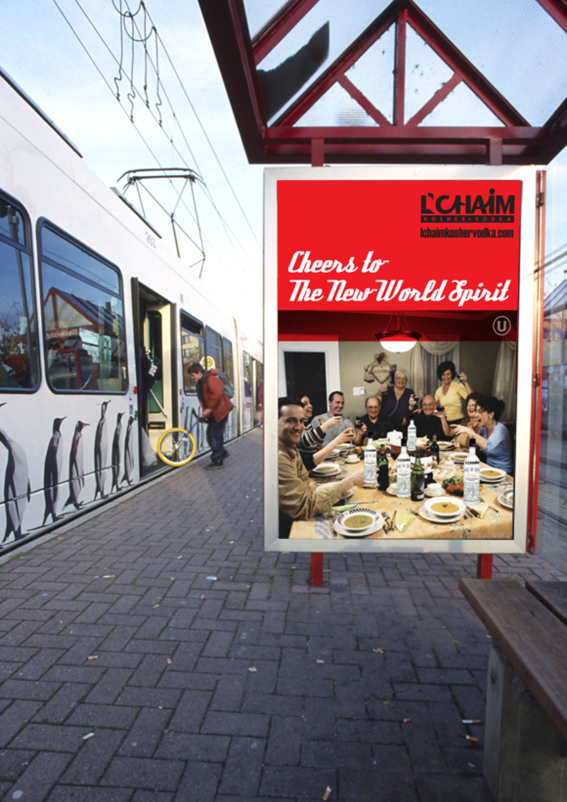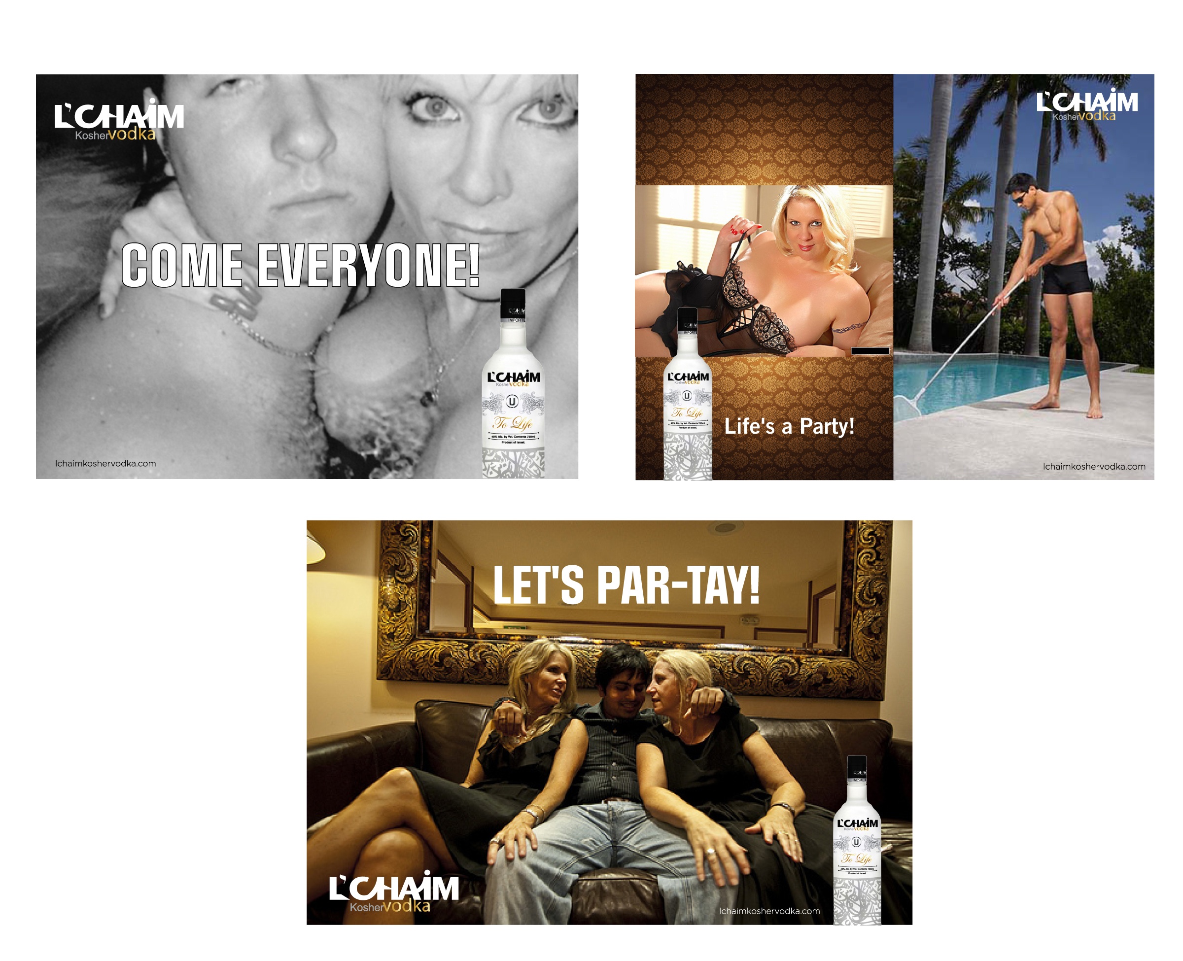 This concept expresses not only the positive/up side of life (“to life”/”cheers”) but also can and will touch on some very serious social issues and tensions. L’Chaim is about bringing the world together in celebration of life. This campaign will bring two “opposites”, “competitors”, “social and political foes’, “public enemy’s” etc. together with memorable graphical images and marketing messages, for example: “How Life Should Be”, L’Chaim, “Come Together”, “To Life”. It also sends a strong message to the world that L’Chaim vodka is a fun brand focusing on the lighter side of life by addressing the heavier side with wit and humor and breaks down the walls of separatism, elitism, stereotypes, hatred and war and evokes images of hope, peace, joy and celebration.