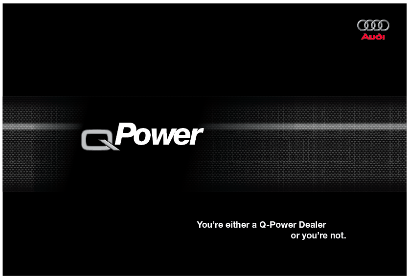 - Audi Q-Power – A project based pitch to support Audi’s Q-Power initiative (a dealer qualification initiative) that was excluded from the original AOR scope awarded to Venables Bell + Partners.